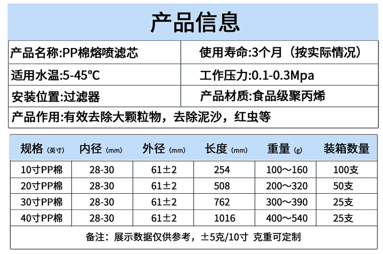 PP熔喷滤芯是采用食品级无毒无味的聚丙烯粒子,经过加热熔融、喷丝、牵引、接受成形而制成的管状滤芯。如果原料以聚丙烯为主。就可以称做PP熔喷滤芯。不仅在水净化大批量使用.还具有杰出的化学兼容性,适用于强酸、强碱及有机溶剂的过滤。纳污能力强,使用寿命长,成本低。
